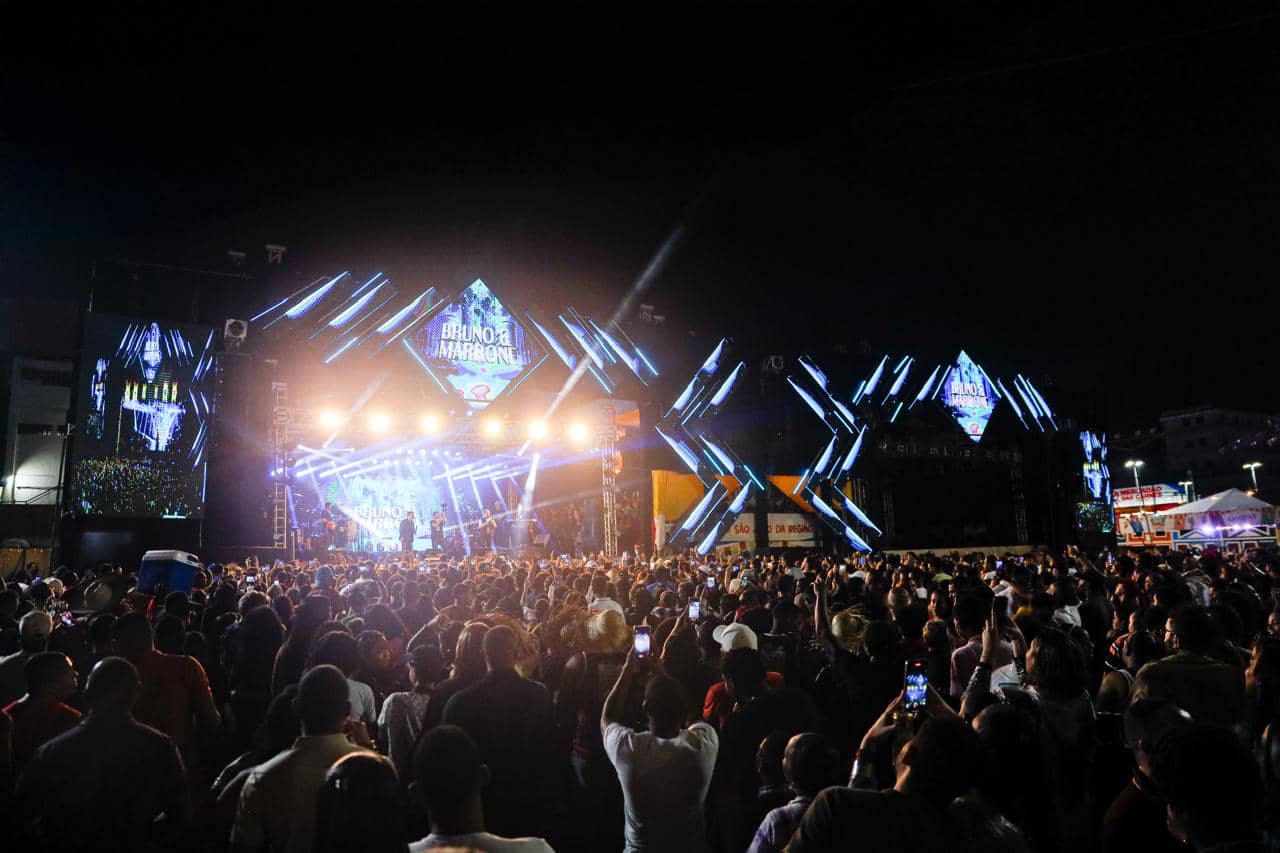 Em seguida, quem subiu ao palco foi Bruno e Marrone. A dupla, que se apresentou pela segunda vez no município, abriu o show com o hit “Por te amar”. Os sertanejos seguiram com o sucesso “Te amar foi ilusão”, uma das músicas mais aguardadas da noite, que despertou emoção nos fãs, que cantaram em coro.