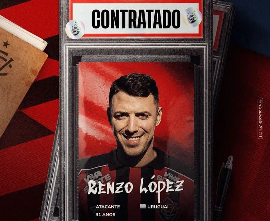 O Vitória anunciou, na tarde desta quinta-feira, 3, a contratação do atacante Renzo López, de 31 anos, até julho de 2026. O uruguaio defendia o Al-Fayha, da Arábia Saudita, e chega como mais um reforço da reformulação no elenco do Leão da Barra.