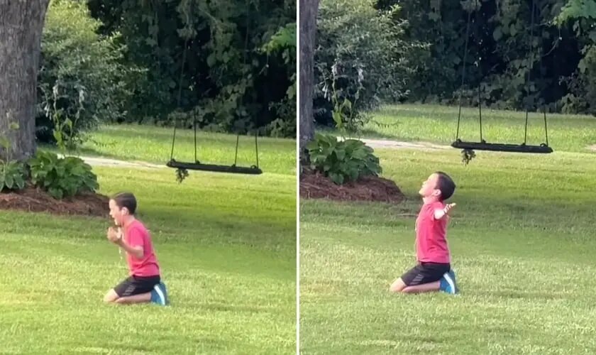 Um menino de 9 anos emocionou milhares de pessoas ao ser encontrado pela mãe de joelhos no quintal adorando a Deus nos Estados Unidos.