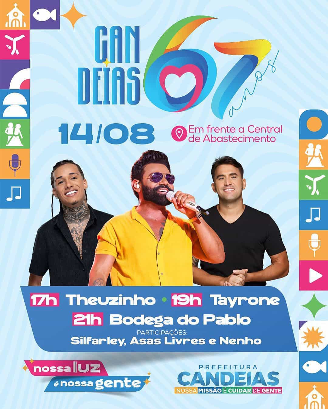 Na terra do arrocha, estão confirmadas três atrações musicais: Tayrone, Theuzinho e Pablo, que chega com seu novo projeto “A Bodega do Pablo”. A expectativa é que mais de 30 mil pessoas compareçam no dia festivo.