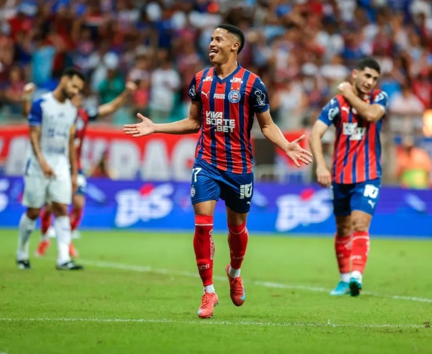 Um, dois, três, quatro, cinco – um gol para cada título de Copa do Nordeste que o Bahia tem até aqui. O maior campeão do Nordestão coroou a temporada histórica que vem fazendo com mais um título, na goleada sobre o Confiança em casa, na Fonte Nova, que rendeu ao Esquadrão seu centésimo gol na temporada. Criando seus próprios talentos e colhendo todos os frutos, o Bahia contou com um hat-trick de Tiago, cria da base tricolor, para consagrar um agregado insuperável contra o Dragão. Com 9 a 1 no placar no intervalo, o Esquadrão passou praticamente 90…