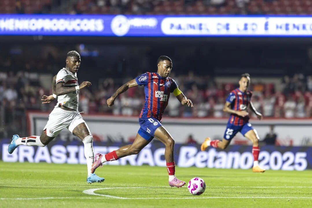 Derrotado para o São Paulo por 2 a 0 no último sábado, 25, o Bahia teve mais uma atuação abaixo do esperado jogando como visitante. No entanto, o Esquadrão de Aço teve a bola do empate quando o placar ainda estava 1 a 0, mas desperdiçou a chance. Aos 18 minutos do primeiro tempo, Jean Lucas recebeu bom passe de Rodrigo Nestor e avançou em velocidade até sair na cara do gol são-paulino. O camisa 6 ajeitou o corpo, deu um tapa no canto esquerdo de Rafael, mas tirou demais e a bola saiu pela linha de fundo. O…