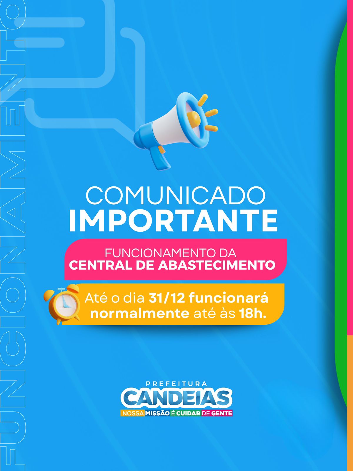 Com a chegada das festas de final de ano, uma das épocas mais movimentadas para as vendas no comércio de Candeias, a Prefeitura estabeleceu o horário de funcionamento da Central de Abastecimento.