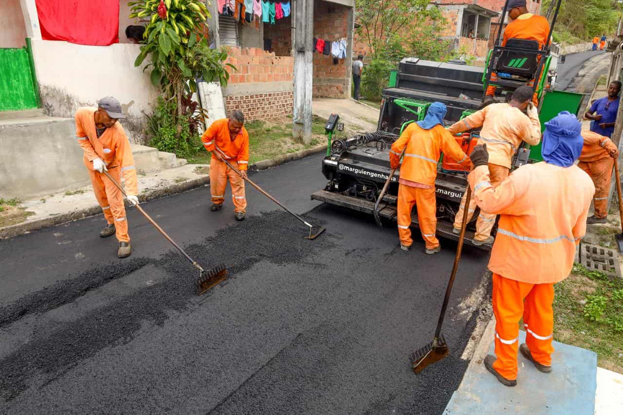 O Malembá de Baixo recebeu, nesta terça-feira (20), as obras do Asfalta Candeias, programa realizado pela Prefeitura, que vai transformar as vias públicas da sede e dos distritos, promovendo mais acessibilidade, segurança e mobilidade urbana. No local, onde o programa foi lançado pelo prefeito Eriton Ramos no último dia 5 de janeiro, estão sendo executados cerca de meio quilômetro de pavimentação. Morador da comunidade desde 1972, Seu Adilton não escondeu a felicidade ao falar sobre o progresso do bairro. “Cheguei aqui no tempo em que a gente tinha que usar saco…