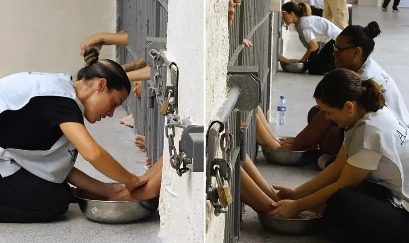 Cristãs lavam os pés de mulheres em prisão durante evangelismo de Páscoa em Goiás